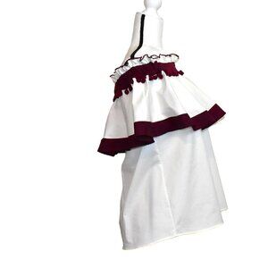 Sugar + Lips Amy Beaufort Linen Co. Off The Shoulder Summer Top White Maroon Size XS