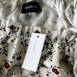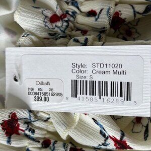 Sugar Lips BOHO Dress Size S Cream Multi Peasant Flowy Tie Sleeve Off Shoulder