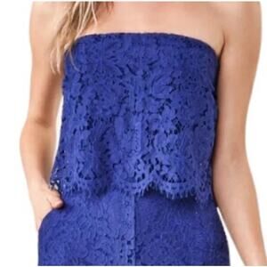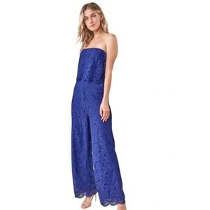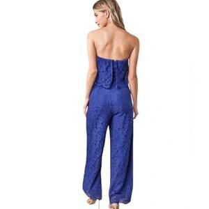 Sugar Lips Blue Lust for Luv Strapless Lace Lined Jumpsuit Pockets Medium NWT