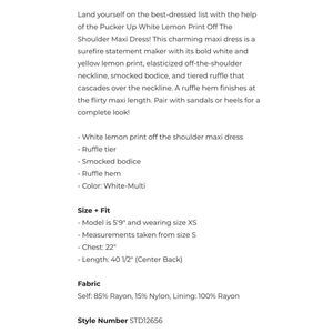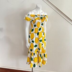 Sugar Lips Dress XS White Lemon Print Pucker Up Off The Shoulder Maxi