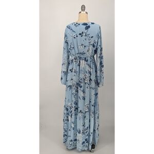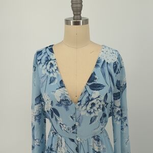 Sugar Lips Floral V Neck Maxi Dress Blue S bohemian spring long sleeves casual