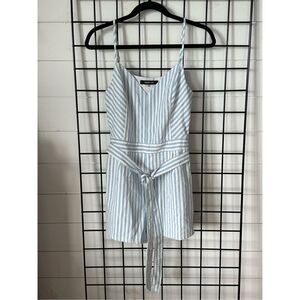 Gorgeous flirty fun summer romper in sky blue and white stripe