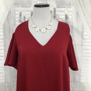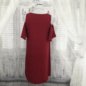 Sugar + Lips Size Medium Solid Red Cold Shoulder Short Shift Dress Cocktail