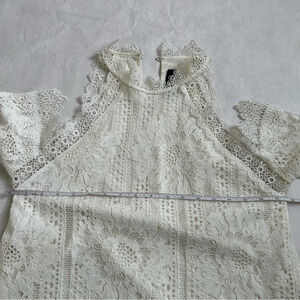 Sugar Lips Sugarlips Womens LACE HIGH Neck Open Shoulders TOP Blouse White Sz S