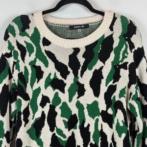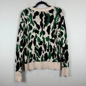 Sugar Lips Sweater Women's Medium Ivory Green Animal Print Long Sleeve Eclectic