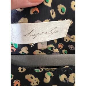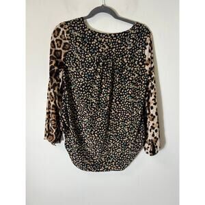 Like New. Dressy Leopard Top. Great for fall transition. Light weight but long sleeve. Pretty shades of tan on black with green, pink, and purple accents.