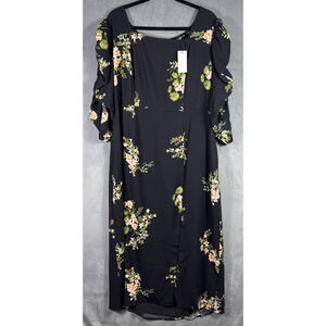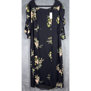 Sugar Lips Women's Jasleen Floral Ruched Sleeves Midi Dress Curve Size 2X NWT