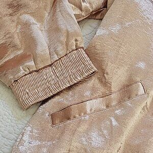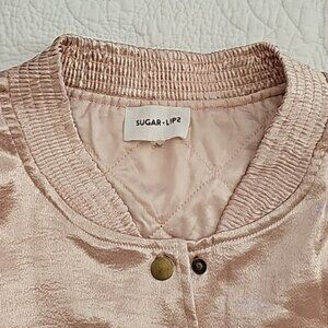 Sugar Lips Women's Retro Bomber Jacket Size Large Pink Shiny Snap Front Shiny