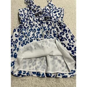 Sugar + Lips Womens Size M One Shoulder Ruffled V Neckline Mini Dress Blue White
