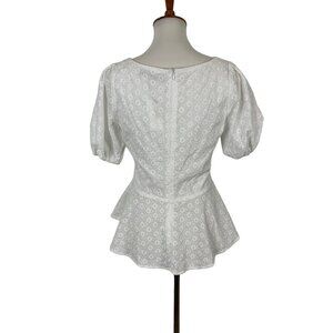 Sugar + Lips Women’s Top Small White Peplum Short Sleeve Back Zip NWT