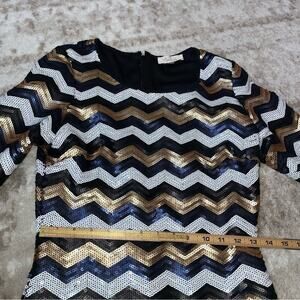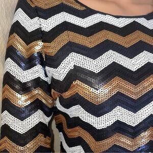 Sugar Lips brand Gold, black & white full sequined chevron print body con dress SZ XS