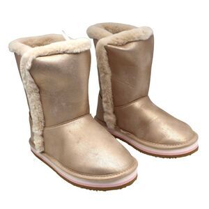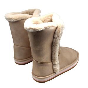 Crafted with soft suede and faux fur trim by Sugar, the Sugar Milhoja boot is a timeless classic metallic distressed shimmer cozy boot. It adds shiny flair to any outfit, from athleisure wear to flowy dresses to faded jeans and hoodies.