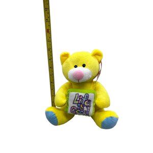 Sugar Loaf Toys presents a 10" yellow bear with a pink nose and blue feet, embroidered with the uplifting phrase "Life Is Good.".