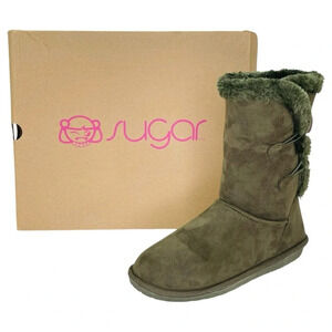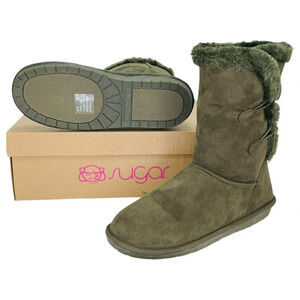 Sugar Marty Army Green Microfiber Suede Over The Ankle Womens Cozy Boots Size 8M
