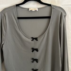 Sugar Moon Gray Mesh Bow Top XL Long Sleeve Ruffle Edge Coquette Y2K Crop