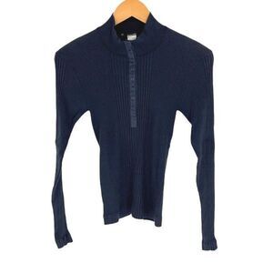 Sugar Products Womens Ribbed Half Button Long Sleeve Knit Top Navy Size XSmall