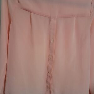 Sugar Rain top with roll up sleeves button details in back size small peach