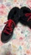 Sugar Rolls Fuzzy Lug Sole Hiker Black Boots Red Shoe Strings Women Size 10M