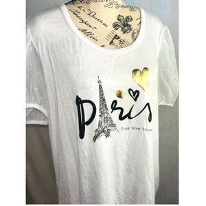 • Sugar & Rose Women’s Size XL Puffy Sleeve Paris “True Love Forever” Graphic Top