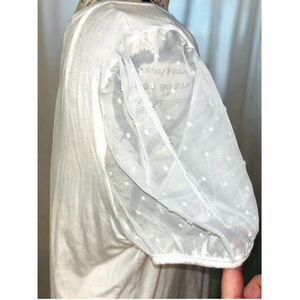 • Features: Scoop neck, sheer puff sleeves with raised dots, relaxed fit, lightweight, easy care, Paris graphic on front, pullover closure