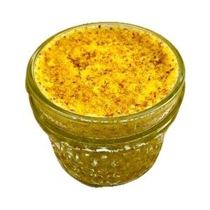 Lemon sugar scrub with micro lemon peel exfoliant.