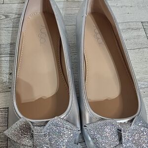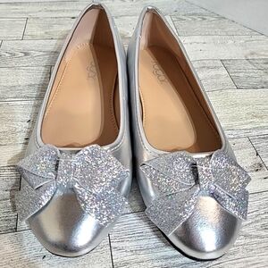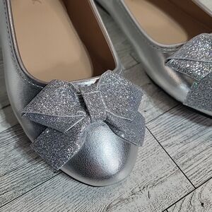 Sugar Size 4 Flats Silver W Silver Glitter Sparkle Bow NWO Ballet Flats Youth