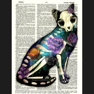 Sugar Skull Cat Gothic Dictionary Art Print Decor