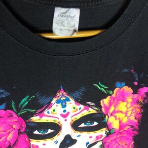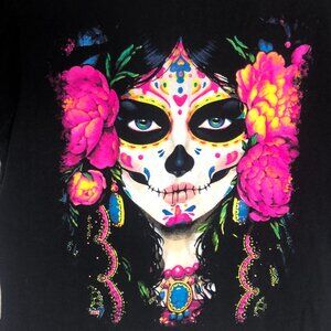 Sugar Skull Colorful Print Graphic Tee Shirt Size Large