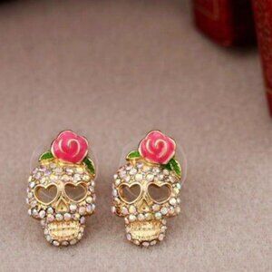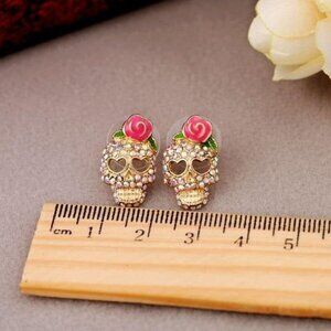Sugar Skull Rose Day of the Dead Crystal Earrings