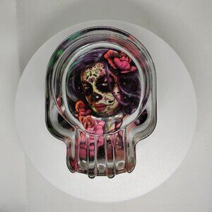 Sugar Skull Dia De Los Muertos Glass Ash Tray