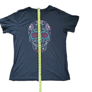 Sugar Skull Graphic T-shirt Blue, Green, Purple and Gold Women's Large