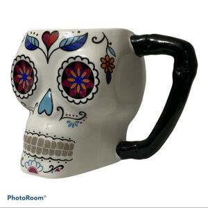 Sugar Skull Day of the Dead Jumbo Ceramic Mug White Black Multi Color