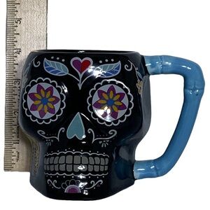 Sugar Skull Day of the Dead Jumbo Ceramic Mug Black Blue Multi Color Large Holds 16 OZ NEW Merchandise NWT