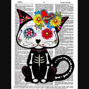 Sugar Skull Kitty Vintage Dictionary Art Print