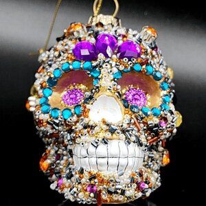 pier 1 ornament, sugar skull decor, rhinestone skull, beaded skull, gothic ornament, dia de los muertos, halloween skull, jeweled skull, skull christmas, pier 1 skull, retired ornament, sparkly skull, holiday gothic