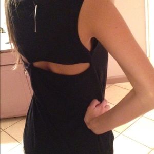 Black Sugar Skull top. Has never been worn. Deliberately wore nothing underneath so you can tell where the top has cut outs. It is solid black with intricate white stitching for the sugar skull. Large cut out in the back. Has a high-low design.