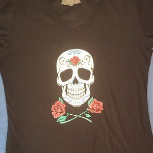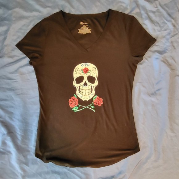 Sugar Skull T-shirt by No Boundaries Black Skull Roses Juniors Size Medium 7-9