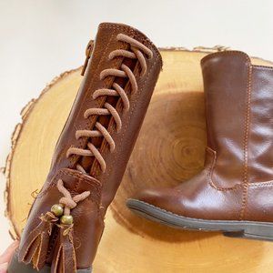 Adorable tall faux leather boots with tie up tassel back by Sugar Size: 5 (Toddler) Very good used condition
