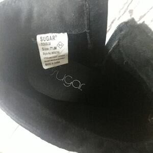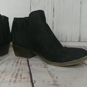 Black Sugar booties with tassel accents at the heel. Boots have an inner zipper closure. Approximate heel height is 1.5in. Signs of wear: scuffs at toes and heels (pic 2-3). No box. US size 7.5.