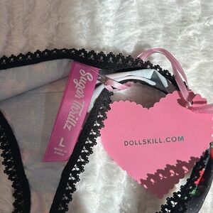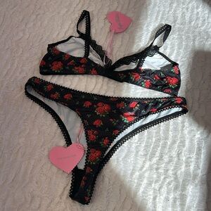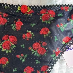 Sugar Thrillz Black Bed of Red Roses Floral polka dot Lingerie Set women large
