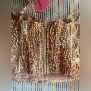Sugar Thrillz Crop Top Size Small Pink/Gold Bows Spaghetti Straps NWT