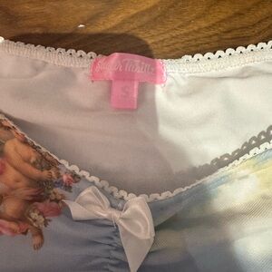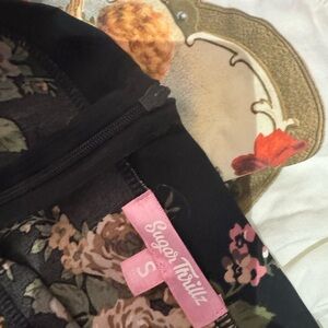 Sugar Thrillz two shirts (one NWT), one pair of shorts, and one pair of NWT pants. The blue top is a size small, the other top is a medium. The shorts are small, and the pants are xsmall. I never got around to wearing these - hoping another Sugar Thrillz/ Dolls Kill fan will love them. The Spank Me top has sold - can make an offer for less.