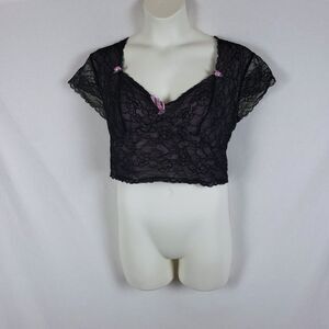 Sugar Thrillz Romantic Goth Coquette Black Lace Mesh Crop Top Womens 1X
