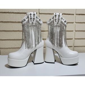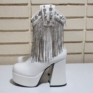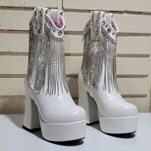 Sugar Thrillz White Rhinestone Fringe Cowgirl Platform Boots Size 5 NWOB