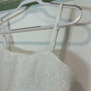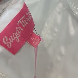 Sugar Thrillz white tinsel ruffle hem Holli Would mini dress large new w tag