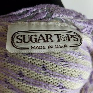 Sugar Tops sweater cream/purple knit cottage corps/coastal grandma M/L VTG