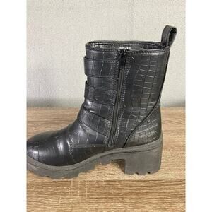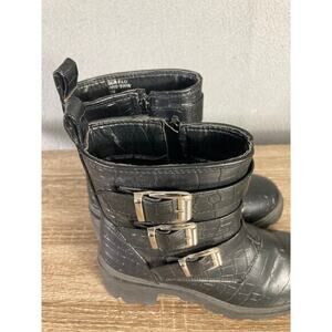 Sugar Women's Black Embossed Triple Buckle Combat Boots 7M