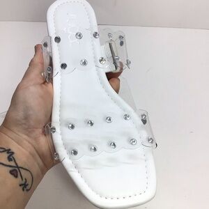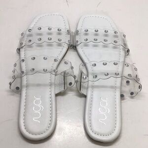 Sugar Womens Clear Rhinestone Double Strap Jelly Sandals Slides. Brand new without box and retail sticker attached to bottom. From smoke free home.