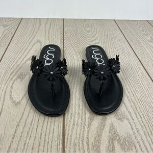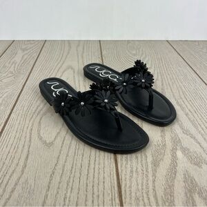 New in box, Sugar Women's Finnesse Floral Daisy Strap Flat Sandals, size: 8M women's, color: Black, MSRP $40.