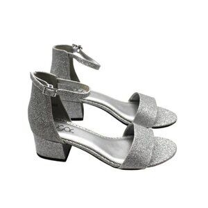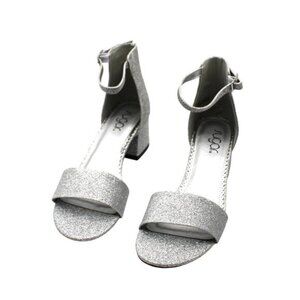Sugar Womens Silver Glitter Cushioned Adjustable Ankle Strap Sandals
